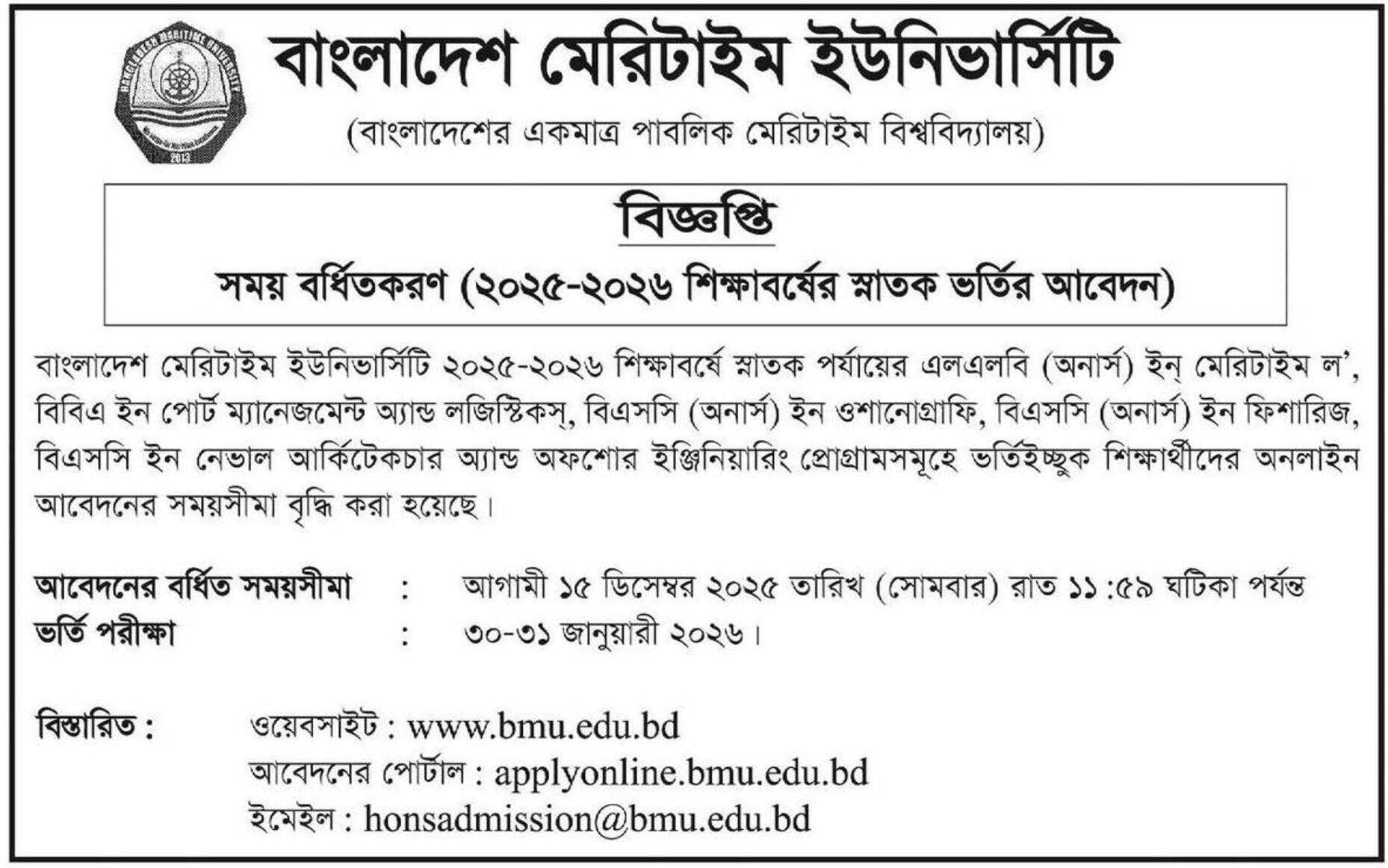 Bangladesh Maritime University Admission Revised Circular 2025-26