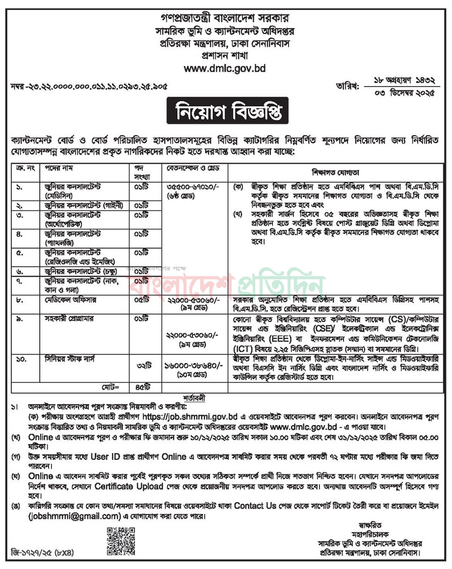 Bangladesh Army Civil Job Circular 2026. BOF Job Circular 2026. Bangladesh Ordnance Factory Job Circular 2026. Bangladesh Sena Bahini Job circular 2026. Civilian exam result 2026. Defense Ministry job circular. Army Civilian Job application last date December 31, 2025. Civil job for Military Engineering Services. Military Engineering service job application start date December 10, 2025. Applicants can apply online by www.mes.teletalk.com.bd web site. But application fee have to pay by SMS. Applicants may attend for written exam, viva test for final selection. Written and viva result will publish army web site. Departmental candidate can for their suitable post but during viva exam, they have to show no objection certificate.
