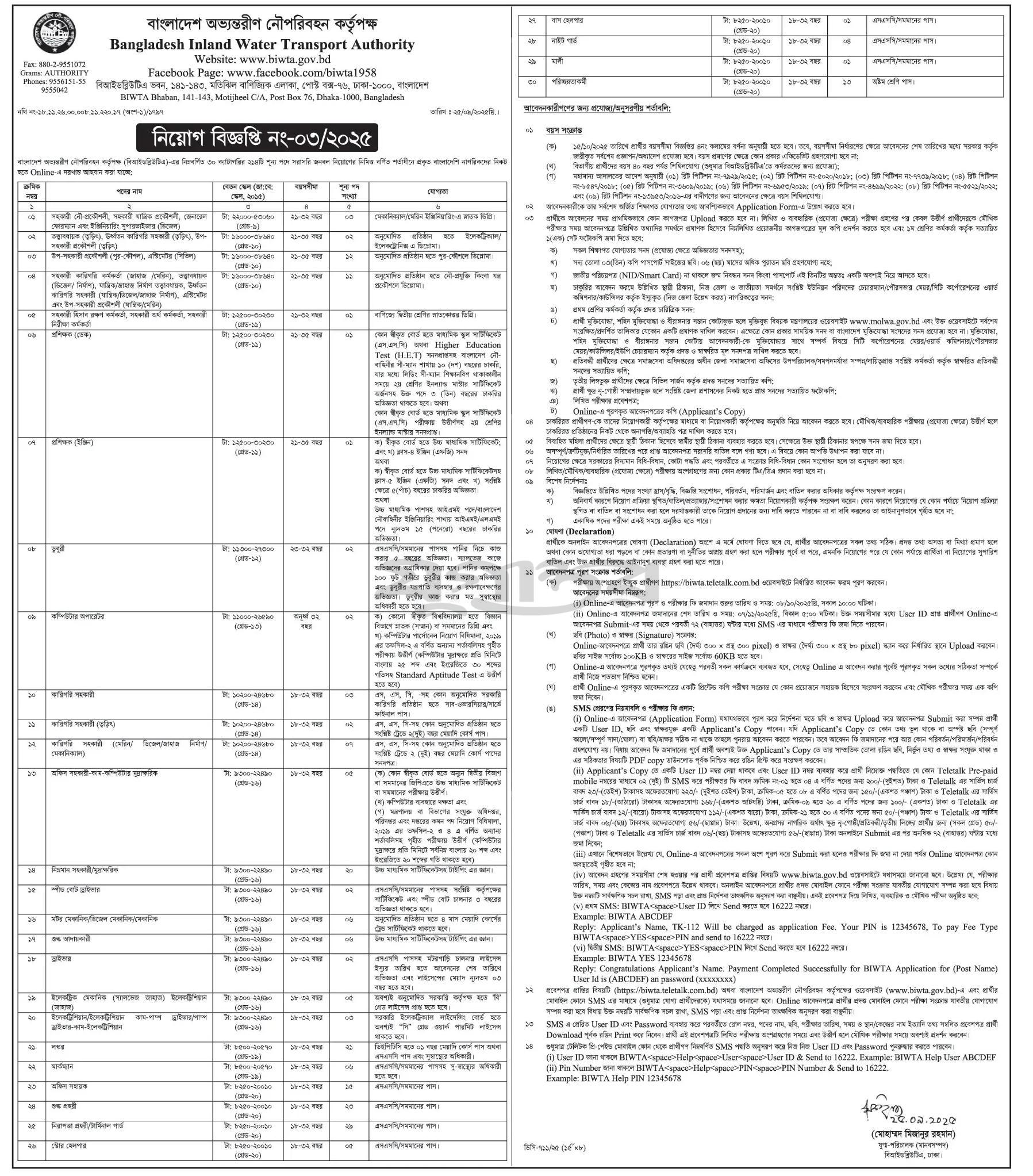 BIWTA Job Circular 2025. BIWTC job circular 2025. Bangladesh Inland Water Transport Authority job circular 2025. Water Transport Ministry Job Circular 2025. Bangladesh Water Development Board Job Circular. BIWTA exam result. Inland Water Transport job application last date November 7, 2025. Bangladesh Inland Water Transport Corporation has published various type of job requirement. Experienced and Fresh both type of job available. Dockyard & Engineering primary selection exam start on October 2024. BIWTA and BIWTC Exam Routine download. Applicants can apply on plane with necessary information. BIWTC Written exam date, admit card. BIWTC Application Form. They have to submit filled up form in the bellow address: