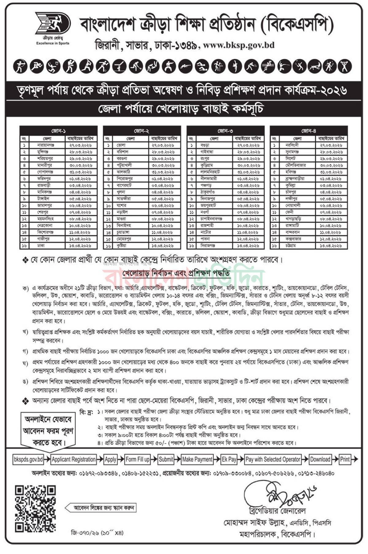 BKSP Admission Circular 2026. BKSP Class 4-8 Admission Circular 2026. Bangladesh Krira Shiksha Protishtan admission circular 2026. BKSP Class 4, class 5, class 6, class 7, class 8, class 9 admission circular 2026. Krira Shiksha Protishtan admission application last date December 3, 2025. BKSP Diploma in Sport Science admission circular 2026. Bangladesh Krira Shiksha Pratisthan school admission primary selection will be started on December 4, 2025. BKSP has invited admission application for class four, five, six, seven, eight & nine. Admission process will begin after primary selection. Primary selection will be completed on December 18, 2025. Interested applicants have to attend for primary selection and they need to fill up registration form BKSP. Only primary selected candidate can attend for final selection. Sports Talent Search and Intensive Training Program 2025