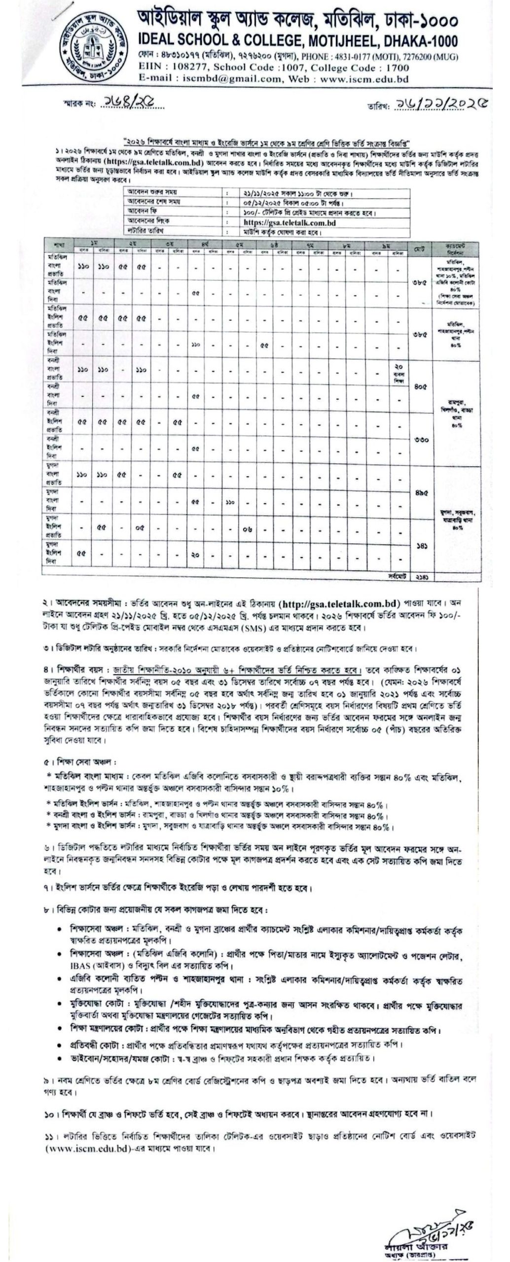 Motijheel Ideal School & College Class 1-9 Admission Circular 2026