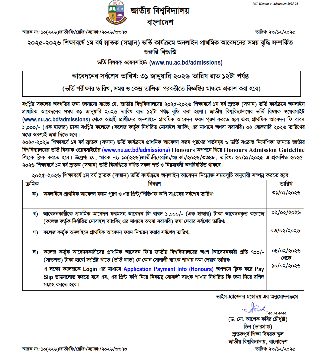 National University Admission Schedule 2025-26