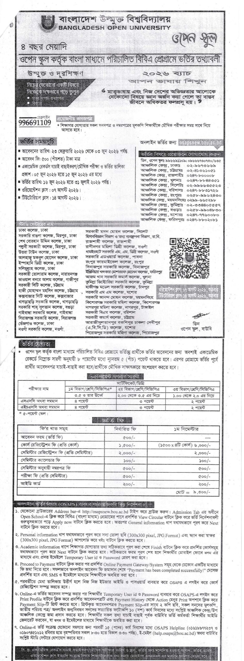 Bangladesh Open University BBA Bangla Admission Circular 2026